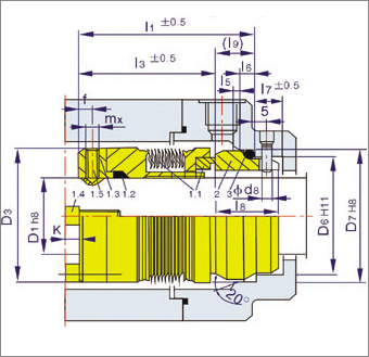 簡介 單端面密封、平衡型/任意旋向/金屬波紋管 運行參數(shù) d=38~127mm p=≤25bar t=-20℃~400℃ v=15m/s 該系列分為無扭矩傳遞裝置,動靜環(huán)密封圈為柔性石墨